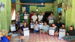 Pertemuan digelar di salah satu rumah warga. Mereka duduk berjejer lesehan di lantai papan beralas karpet. Ruang tamu rumah papan itu hampir penuh dipadati warga.
